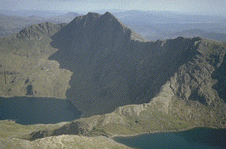 horseshoe, Crib Goch and Y Lliwedd, enfold the corrie lakes Glaslyn and Llyn Llydaw with