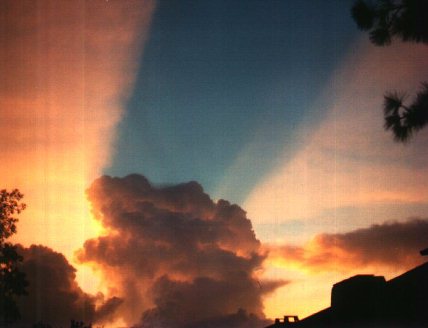We had just finished dinner at Disney World when we saw this ususual combination of clouds and sunlight.