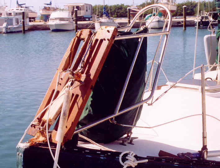 The Last Voyage of Solar Wind At the end of June, I had moved Solar Wind into dry storage using the facilities of Driftwood Marina located at the eastern edge of Marathon. This was a nice safe location with low storage rates so I was pleased. Unfortunately, the approach is from the Atlantic side requiring a long passage up a residential channel and the depths at low tide are marginal - especially at the channel entrance. Now, in mid October, I was ready to sail again. I planned to have Solar Wind splashed on the 15th of October which would coincide with the extreme tides associated with a full moon. I was able to tie up dockside at the travel lift's slip during the night and transfer all my required equipment aboard during the afternoon and evening. Then, with a high tide at a reasonable hour on the morning of the 16th, I was all set. I had arranged to have Driftwood store my car for the next month and made my way out to sea via the long channel. At high tide, this was a nice and easy trip - I had the depth gage running but never saw soundings less than 5 feet. Once out in the open sea, I turned south and raised sail in about 10 knots of breeze. The forecast called for 10 to 15 knots easterly for the next two days with winds increasing thereafter to 20 to 25 knots with small craft warnings. I figured on a nice peaceful sail all the way to Key west where I was due to meet Bill Buchannan who was about three days ahead of me on the same schedule with his Flicka "Easy Going". The plan was that Bill and I would sail our two Flickas in the Key West general area and also take in the sights during the late October bash called Fantasy Fest. I planned an easy first day shakedown sail with a stop in the anchorage of Bahia Honda state park. This worked like a champ and I was the only boat in the anchorage. This cove is completely open from north to south with a nasty tidal current. The only real protection is from the prevailing easterlies. Since Mr. Murphy is my constant crew mate, the predicted northerly winds came in ahead of schedule during the night and things turned ugly. Whitecaps in the anchorage is never a good thing but I rode it out for three days waiting for the conditions to change. When things finally did calm down, I sailed on to Key west and arrived in the harbor by late afternoon. Key West has many cruise ships that dock there and this was no exception. However, now that the Coast Guard was on harbor patrol due to the terrorist threat, an exclusion zone was set up around all the cruise liners. The net effect was a requirement to call the patrol boat and receive permission to transit the harbor outside of their 100 yard zone - which meant using the western edge of the marked channel. After transiting the harbor entrance, I called Bill on the VHF and anchored near his location. It turned out that our sailing plans needed some modification since Bill had engine problems and would need to get repairs before heading out. While things were calm the next few days, we arranged to remove his outboard and take it ashore for repair. We even got it re-installed before the next norther hit with 20 to 25 knot winds. Key West anchorage has several locations suitable for small boats. I prefer the area north of Flemming Key cut and will tuck in as close to Flemming Key as conditions allow. This leaves me outside of any major currents and with some protection from the winds. The bottom is sandy and offers fair holding to my Bruce or Fortress anchors with depths running from 10 to 20 feet. I rig these anchors on 100 feet of chain and use the Bruce when I plan on being there for more than two days or when winds are higher than average. In Key West, things were starting to heat up for Fantasy Fest so I did avail myself of the services of the local water taxi for the ride in to shore. At $5 a ride, this is a bargain since the dinghy dock is generally very crowded and costs about $6 per day. The water taxi does not have a fixed schedule but will pick up individuals on call (use VHF Channel 16 and hail Magic Penny - they'll switch you to their current working channel). Their rate does increase for long trips to outlying anchorage points and all trips after 11 PM. As Fantasy Fest weekend started to heat up, a bit of trouble started to brew to the south with a strong tropical Low forming over the tip of South America and a High pressure system stalling over the southern US. The pressure difference between these two strong systems caused northerly winds to build and remain steady at 20 to 25 knots continuously. When occasional squalls blew thru, winds picked up to 35 knots and gusty. The storm fronts produced numerous water spouts for the next few days with as many as four spouts visible south of the Key West anchorage simultaneously. Conditions remained very unfavorable for easy sailing for the remainder of October so I stayed at anchor in Key West. Boats of 45 foot LOA that tried to leave for the west coast of Florida returned after only a few hours. They reported seas of 7 to 9 feet in the Gulf of Mexico and turned back to the anchorage as fast as they could. A flotilla of 40 foot power boats that attempted to leave via the Atlantic side for the run to Marathon also returned with reports of high winds and steep short choppy conditions. By the of 29th of October, the Low pressure system was officially designated Tropical Depression 14. The National Hurricane Center reported it to be nearly stationary over Nicaragua and producing heavy rains. Late on the 31st of October this system had moved over open water and became Tropical Storm Michelle. To say the least, the local conditions had not improved. I was comfortable in my current location and only became concerned when the anchorage became more crowded and some boats appeared to be closer to me than I liked to see. The advance forecasts now began to predict further strengthening of this storm system with the eventual formation of a Hurricane. This system was