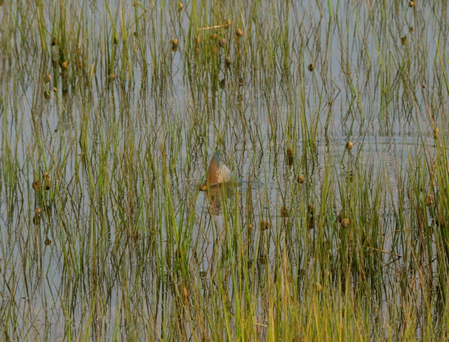And something might grab them. The reds know that the tidal flooding opens a delicious buffet. Fiddlers are the main dish. They must be especially tasty because redfish go to extreme lengths to get them. The reds swim so softly and silently that they may not even push a ripple on the surface. The crabs won’t even know they are threatened. When the fish sees a fiddler on the flat, there’s a snack right there. Even if the crab is close enough to get back into its hole before the red snags it, the fish will stand right on its head and suck the crab out. It creates a vacuum by opening its mouth and flaring its gills. Ssssuuuuck! No more crab.