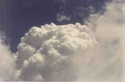 Un cúmul en ple creixement, omplint el cel d'estiu, sobre els prats que duen al Comabona.