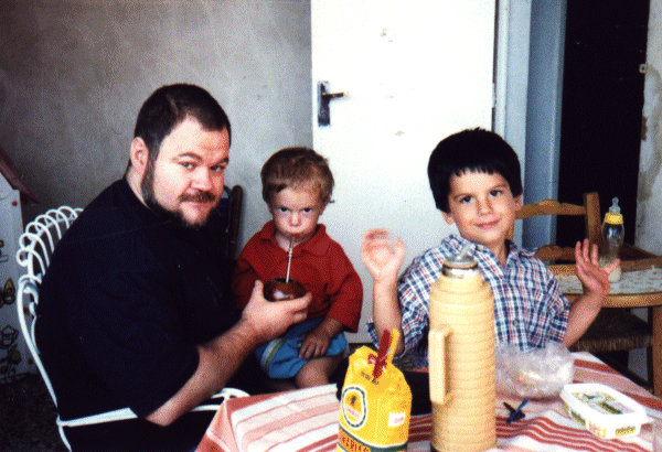 Solymar. Papa, Niklas and Bastian have a Mate. 2000 | Niklas’ long distance call to papa in Germany. 2000 | Grandma Blanca and all her grandchildren. Plaza del Entrevero. 2000 | Nklas and Bastian. Plaza del Entrevero. 2000 |