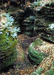 rappelled into the deep recesses of the cave, and also practice on the cliff faces in the area. The rocks consist of the Sharon Conglomerate sandstone that outcrops in this region of Ohio, which provide a sturdy but somewhat yielding surface.