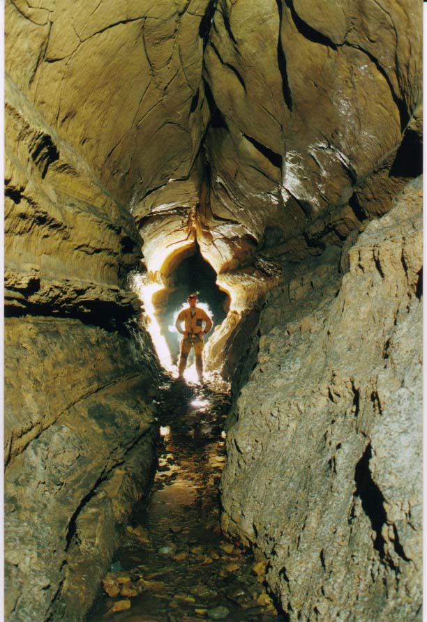 Martin Suster in a mud-floored tube