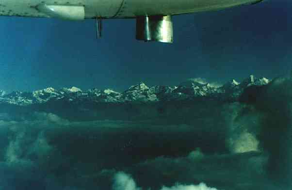 Day 25: Thursday October 31stKathmanduWake up call at 5.30 and the cab is waiting to take me to airport. The cab ride to airport is like bumper cars but amazingly never hitting anything. 200 rs. It is 0644, sitting in the airport, quite modern building. Weather is quite cloudy in the valley. Three groups to go. I am in the yellow group. Last to book and last plane to go. Driven to plane on a bus.The plane is a twin engine, wing on top. A single passenger on each side makes for good visibility. I asked the attendant what kind of plane it was [ jsener or something like that]. It took less than a minute from acceleration to take off. These pilots don't waste any time taxing. Smooth flight all the way. Out