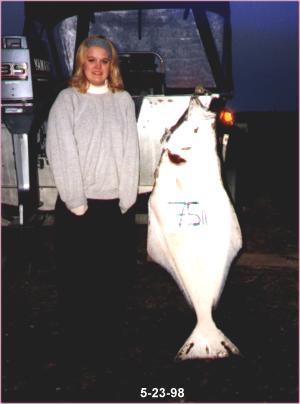 Stephanie with her 75 pound Halibut, which was the largest catch of the weekend. This was her first day fishing in Alaska. Steph will be a senior in high school next term.
