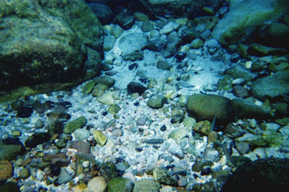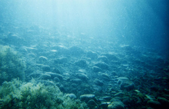 | Volcanic rocks that cover the bottom. |