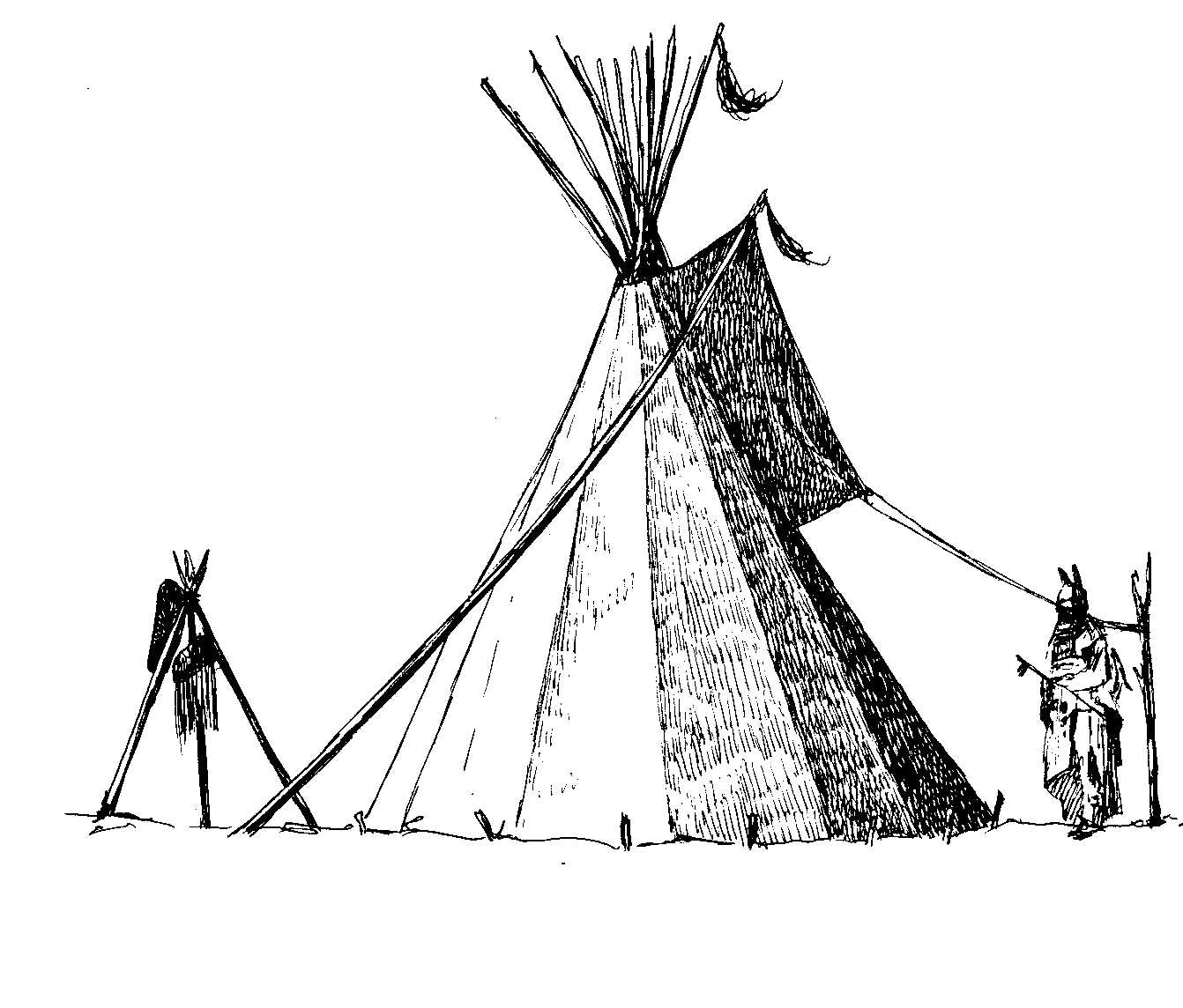 There is not an effective way to "knock" on the door of a tipi or lodge, so there is "scratching." Upon entering another person's lodge the guest was generally given the seat of honor (if a friend, as disrespect could be shown otherwise) and if more than one visitor was invited in then the most important or leader of the group would most likely have the seat behind the fire, directly across from the entery. No one ever walked between the fire and another person unless a respectful salutation was offered first. As well, the guest was never pressured or coerced into the reason for the visit, unless an intentional breach of courtecy was intended, and a somewhat solemn air of silence was the norm. The ceremony or ritual "pipe" generally filled the "silent" void, if tobacco was plentiful. The guest might even be expected to provide the tobacco if the visit was requested or unanounced by the visitor. The Dukes and Earls of Europe, as well as, the Astors of the East really had nothing on the Indian in the way of manners and protocall so far as hospitality was concerned.