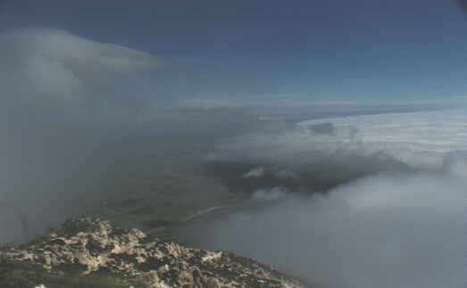 the clouds would intermittently part, I could glimpse the top of El Capitan