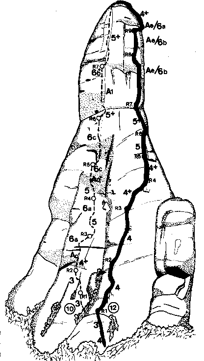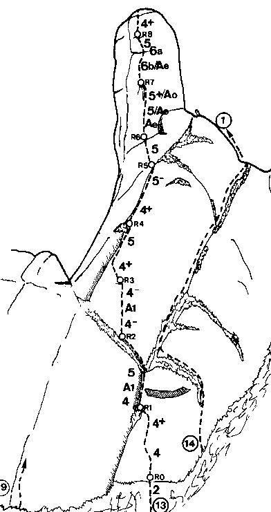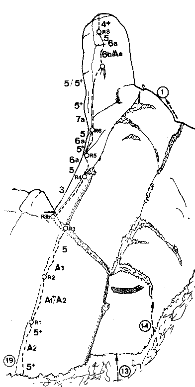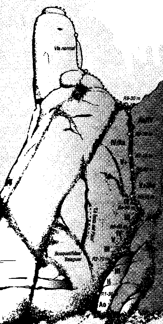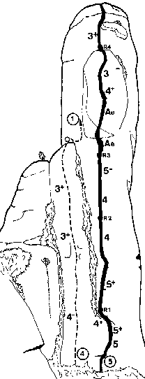 cim fins la "berruga" i el segon ràppel pel diedre de la via normal.