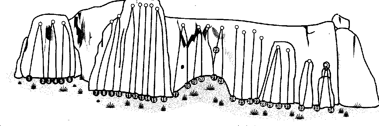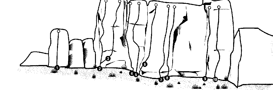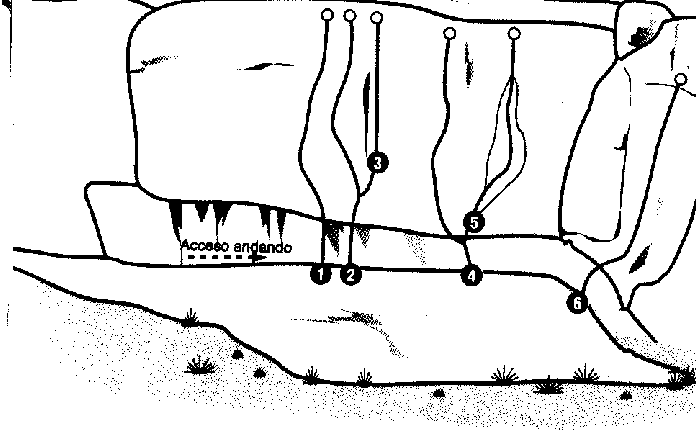 amb graus entre el IV i el 7b, essent vies de uns 15 o 20 m., equipades