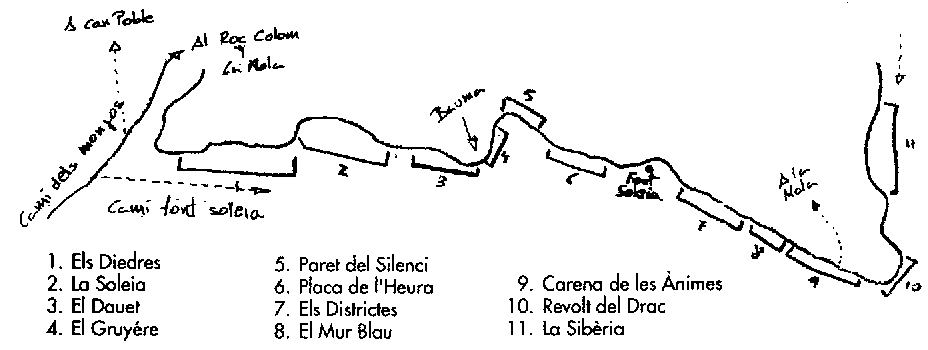 Escalada de resistència, vies de fins a 30m.