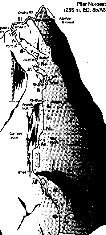 Per arribar al Pilar Noroeste cal pujar per uns esglaons tallats, situats