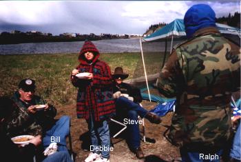 This was our first camping trip [this year] to Anchor Point, Alaska. Memorial Day 1998, was blustery, cloudy and cold, but we had a wonderful time. Two of the grand-children, from Arizona was up for a visit and had a grand time fishing. There were about 15 people in our party! The following are just some of the pictures we took.