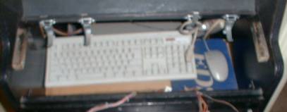 keyboard and the mouse, which reside under the control panel that can swing
