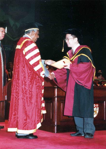 由新加坡总统纳丹(S R Nathan)授予博士学位。