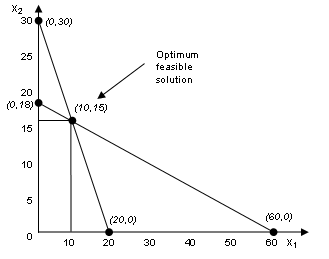 If x1=0, then x2=30; and if x2=0then x1=20