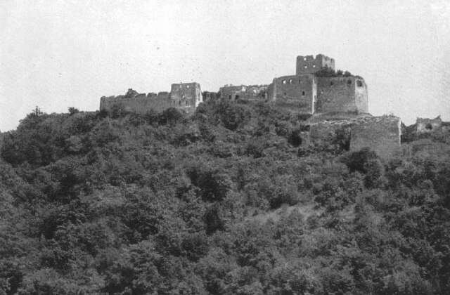 | helyezve áll az egykor hatalmas Csábrág elhagyott omladéka. Első birtokosai s építtetői Hont-Pázmán nemzetség tagjai voltak, akiknek elődje, Hont lovag még Szent István idejében vándorolt be Itáliából s vált alapítójává egy sok családra szétágazó, máig virágzó törzsnek. | ||