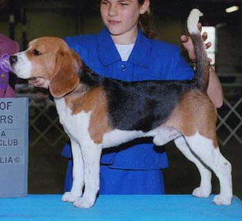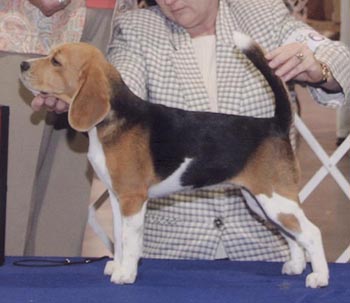 CH AlaDars Just Enchant'N- Sire:Ch AlaDars Something Wild -Dam: Ch Perky's Takin' A Break. "Dotti" a 13 inch, is a littermate to CH Aladars Just Idoliz'N and CH Aladars Just Command'N. Dotti is owned by Aladar beagles and was breeder owner handled from the Bred-By- Exhibitor class to her championship. She was Winners Bitch at the North Georgia Hound Association show for her first major. She then was awarded her final major by going BOS for a 4 pt major over two nice bitch specials.