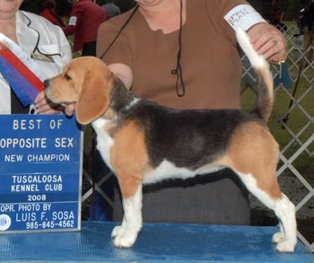 CH AlaDars Just Bewitch'N- Sire:Ch AlaDars Something Wild -Dam: Ch Perky's Takin' A Break. "Samantha" is a 13 inch, is a littermate to CH Aladars Just Idoliz'N, CH Aladars Just Command'N,and CH Aladars Just Enchant'N. Samantha is owned by Janet Doesschate and Aladar beagles. She was owner handled to her championship. She was shown to a second in the Open class by Janet at the Beagle Nationals 2007 and then came to AlaDar to be finished.