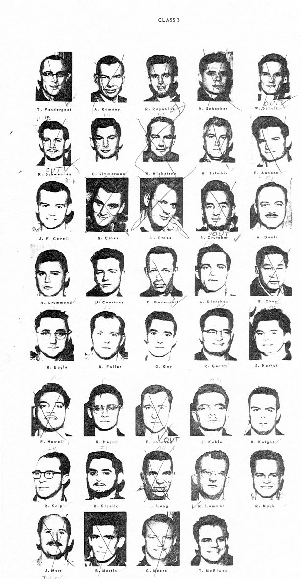The scanning source for these pictures was not the greatest and some of the scans are not very good. The 'X's through some of the pictures indicate guys that had left the system.