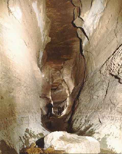 This is a view of the Crookshank stream which can be entered through the 95-foot Crookshank pit entrance, the Staircase entrance which is a multi-drop entrance or the Snedegar's sump. A sump is a section of the cave where the water reaches the ceiling and can only be passed during low water conditions or by an experienced cave diver.