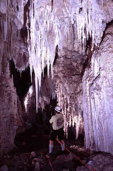 Great care is needed not to break the spectacular stalactite that hangs beside the trail.