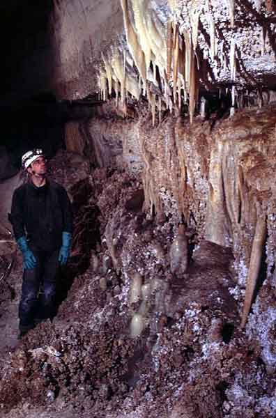 Tiny strips of bacon flowstone hang from the walls.