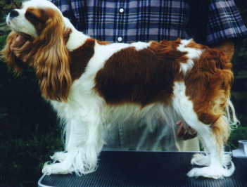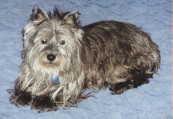stormy is a gray brindle carin terrier, who allowed the cavaliers to come into