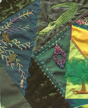 "African Queen" block, from a block round robin group. This great crocodile was done by Alisa McDonald. The blocks were pieced based on a movie theme.
