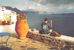 island and the pitch-black town of Oia. Dragged