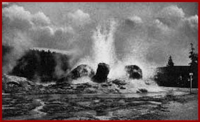 This vintage Haynes picture of Grotto Geyser shows the start of a Grotto eruption. The water is not nearly as tall later in the eruption. |