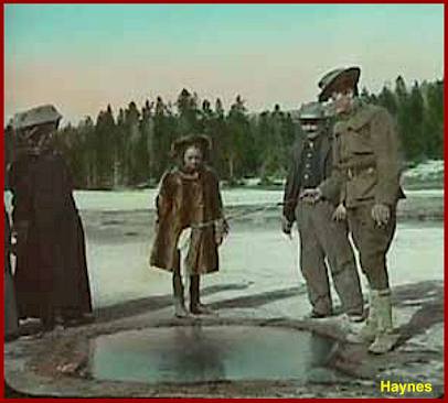 | This vintage lantern slide by F.J. Haynes shows a handkerchief being "laundered" in handkerchief pool. For more on this long abandoned and questionable practice, read the history of Handkerchief Pool. |