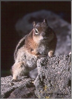 A curious Golden-mantled ground squirrel always