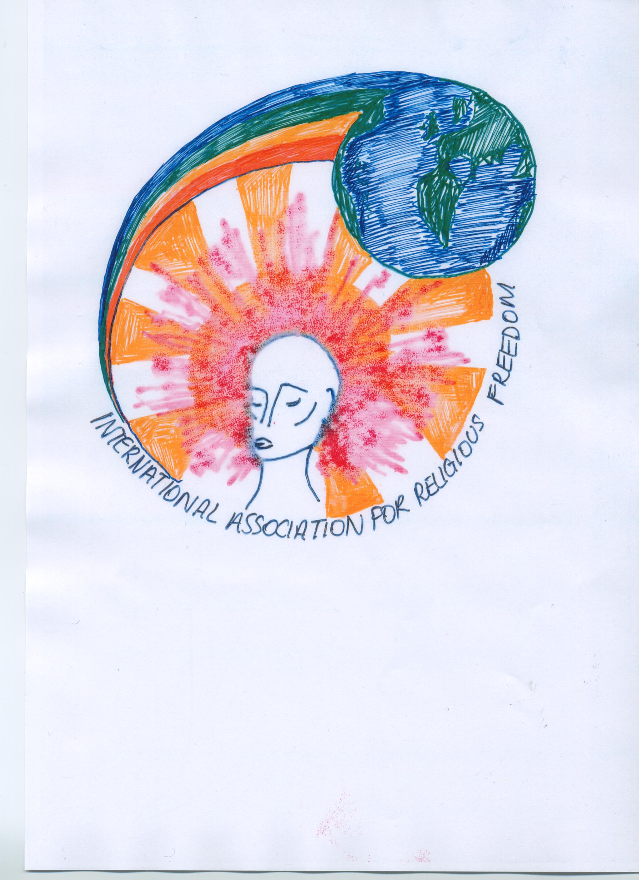 Andrew Clark and I were invited to speak to 6th formers (16-18 year olds) in Bolton, UK in October. The event was designed as an interactive lecture and Andrew and I ran various discussion groups. It was an extremely enjoyable and stimulating experience to be able to engage with such lively young people. One group chose to create a new logo for the IARF. It must be borne in mind that they were given very little time to produce this piece of work, but here is one idea. Here is a brief explanation of the picture according to the student. Religion and belief relate to people, so therefore these are emanating from the person's head. The wide variety of beliefs are partly indicated by the colours of the rainbow and the international nature of IARF is shown by the globe.