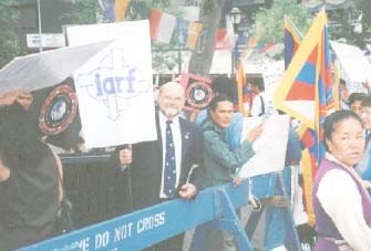 It was excellent that this indeed was the message which the Secretary General gave in his speech. In fact tributes to the Dalai Lama flowed from the platform, and, as your General Secretary, I both attended the Summit and the protest demonstration outside in the U.N. Plaza. For this I had to create a portable IARF banner (see photo).