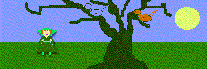 Janice came to a small tree with an owl sitting on a branch. "Mr. Owl," yelled Janice. The owl looked down and cried out, "Can't you see I am trying to take a nap?" "Sorry, but I am searching for a picture of the Wizard McGee, have you seen it?" asked Janice. "YES YES YES, it was fluttering around in the wind about two days ago. It blew to the east over by the Parrot Tree." said the owl. "Thank you very much!" said Janice.