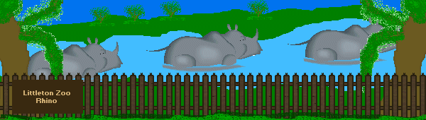 ![]() ![]() ![]() ![]() HOME: Forests with open clearings, scrub, and forested savannas, always near water, in Africa LIFE SPAN: 50 years LOOKS: THe adult black rhino is 10 to 12 feet long, about the size of a large station wagon! It's weight can be up to 2500 pounds. Two horns, which are really tightly packed hairs, are close together on their nose. Their eyesight is so bad that rhinos run into bushes and trees. They have excellent hearing and good sense of smell. FOOD: Shoots and twigs of mimosa and other woody, thorny bushes. HABITS: Rhinos are unpredictable and unsocialable. When the rhino sees a stranger they charge, running up to 20 to 35 miles an hour. They will then lower their heads and strike with their horns. During the hottest time of day they stretch out on one side or they will bathe in cooling swamps. When they cover their bodies with mud it keeps parasites away. Poachers hunt the black rhino for their horns, which are used for Oriental folk medicine to cure sickness, or they use them to make handles for daggers. The Black Rhino is an endangered species. ![]() ![]()