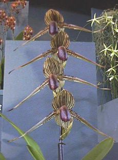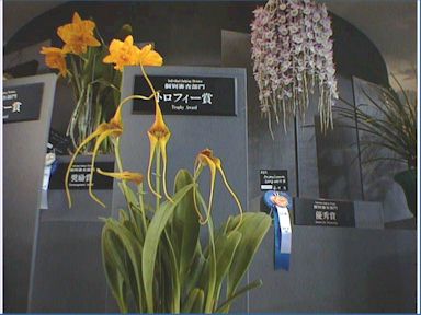First, Masdevallia macrura 'Elm Yellow Monster' SM/JGP, Paph. Screaming Eagle, Paph. rothschildianum and then, the grand champion of the show, Lyc. Shoalhaven 'Kyoto' SM/JGP. If this photo, in .gif format, cannot be seen, go to Argus page.