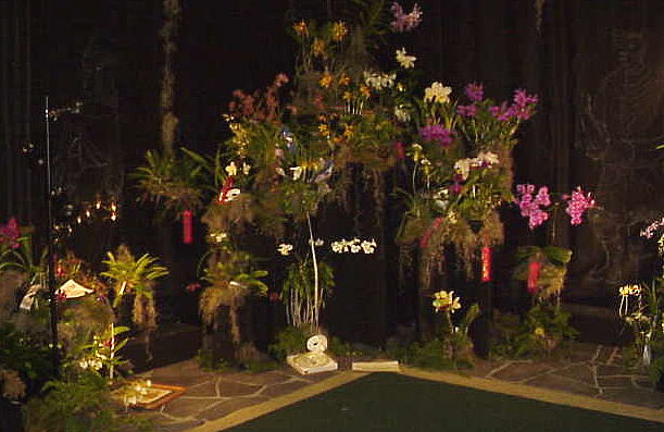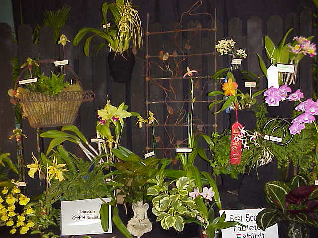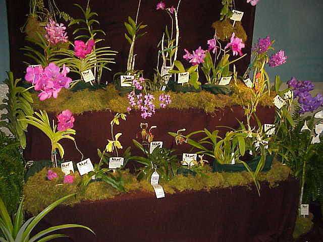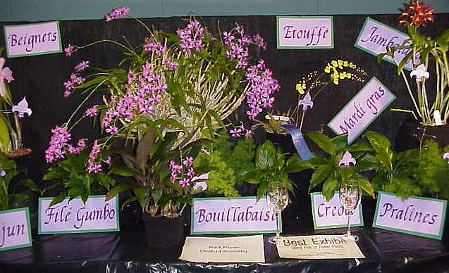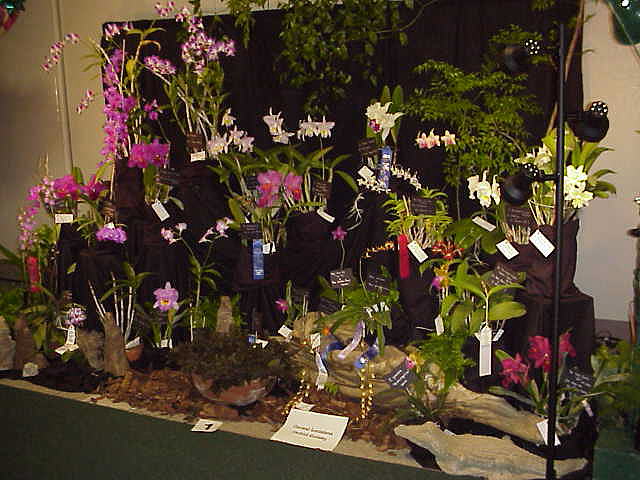 Yes - Baton Rouge Orchid Society...home society of Ervin Granier, the blue catt breeder - he spoke at the Shreveport meeting this past Sunday. It was built in a horseshoe shape, well balanced by size and color of plants - only visible prop is a stylized FrancoFete 99 logo..neatness, balance and QUALITY OF PLANT MATERIAL brought Baton Rouge display the AOS trophy AND the ODC trophy.