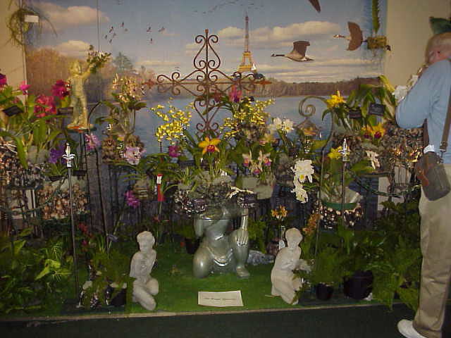 Patsy Boersma - SOS president - used a bateau to display her orchids - those are the folks with the "pyramid greenhouse".