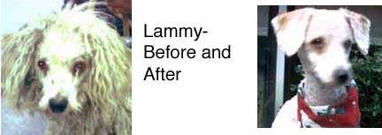 Upon seeing the now happy, cleaned up, shaven and beautifully groomed dog, Randi agreed to foster. The mini poodle now looked like a little white lamb, and we both agreed to call him, "Lammy." Meanwhile, Lammy stood on his back legs doing a little "poodle dance" in seeming recognition and appreciation that someone was taking him home! I emailed Sara later to tell her the happy news and thanked her once again for her kind offer.