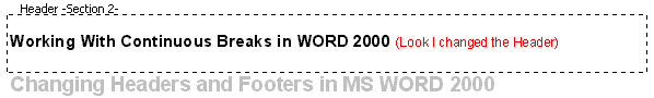 I'll be placing a Continuous Break on the Previous Page so I will be able to change the Header and Footer on this page. When working with Breaks, it would be a great idea to turn on the Show/Hide button on the Standard Toolbar so you'll be able to see exactly what you are accomplishing. The following is an attempt to duplicate what the continuous break will look like on your page.