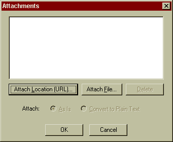 - Netscape lists the URL in the Attachments dialog box. Repeat steps 2 and 3 if you want to attach more URLs. Then click on OK.