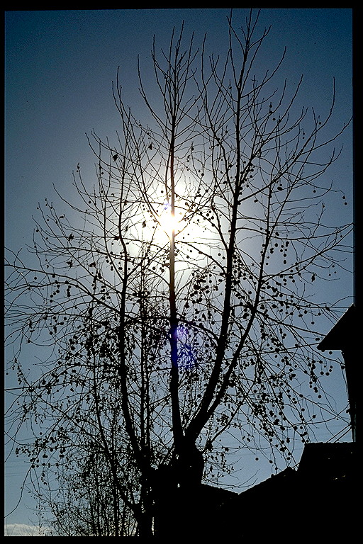 Controluce: Arborea, platani, Kodakrome 64, Olympus OM1, 50mm