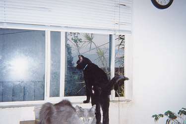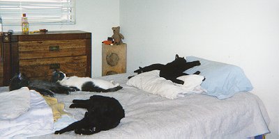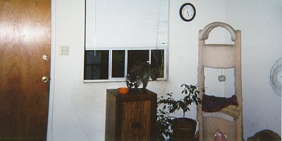 April 1998Meow did the bean scold me today!! She furry mad at me for being gone for 2 days! I have furry big wound on my hindquarter. I get in fight with something.Bean had to clean it and meow it hurt when she do that!! hiss!! I not like it! She say it my own fault for being a bad kitty.She then make me take some yucky medicine and won't let me outside *pout*. She say I better stay inside so she can make sure I get my meds and she can keep the wound clean. She say she wants to try and keep it from abcessing so I don't have to to the furfixer.Speaking of furfixer, poor Pookie had to go.Bean notice he have furry bad breath and was drooling. So she take him. He had to have almost all his teeth pulled cause they were furry bad. Now he feel furry much better and is eatting lots of Whiskas.