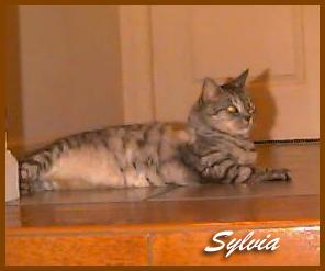 My dear sweet Syliva.Such a very special kitty and good friend.How she tought me about love and commitment.About faith and hope.She fought so bravely aginest the nasty Sarcoma Monster.During that time she never lost hope.She worked hard to spread the word about this terriable diease to try and spare others from having to through it.Rather then thinking of herself,she gave her all to help others and her Journey of Hope continues through her sister Smidgen and her very specail family.