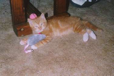 Silly little Abby! How she makes me laugh! She paws me cat mail all about Ebony (shhhh!! don't tell!) and how Ebony think she is just so smart and boss cat! She say dat Ebony act like she tough but she really just a sweetie pie.Abby loves to steal pencils from her bean. It so furry funny to see him chaseing Abby all ober de place!!