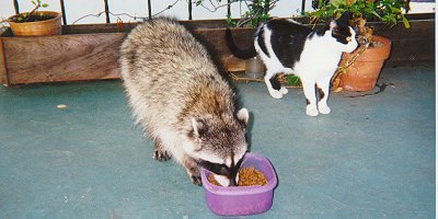 Willie got in a fight with Mr Racoon!! It was furry early one morning before all the humans were up.My human had just opened the cat door for us after giveing us our Whiskas.She put food outside for the wild cats and went off to do whatever it is that humans do.Ren Abby Willie and I were all meowing over the latest mouse that Lucky cought when suddenly up the stairs came Mr Racoon!I hiss and grawl at him!! Human bean comes out and Mr Coon goes back down the stairs *WHEW*!!