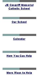 J. E. Cosgriff Memorial Catholic School has high expectations for its students and works to promote a whole education for its students. High standards are held up for the students in all academic areas; the curriculum is made more complete by the art, music, computer education, Spanish, physical education and library skills classes. Parent support and participation in the life of the school is a vital part of the success of our school.